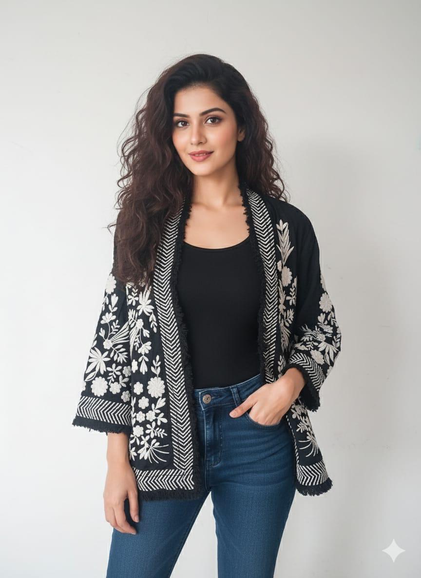 White & Teal Floral Hand-Painted Co-ord Set 🤍