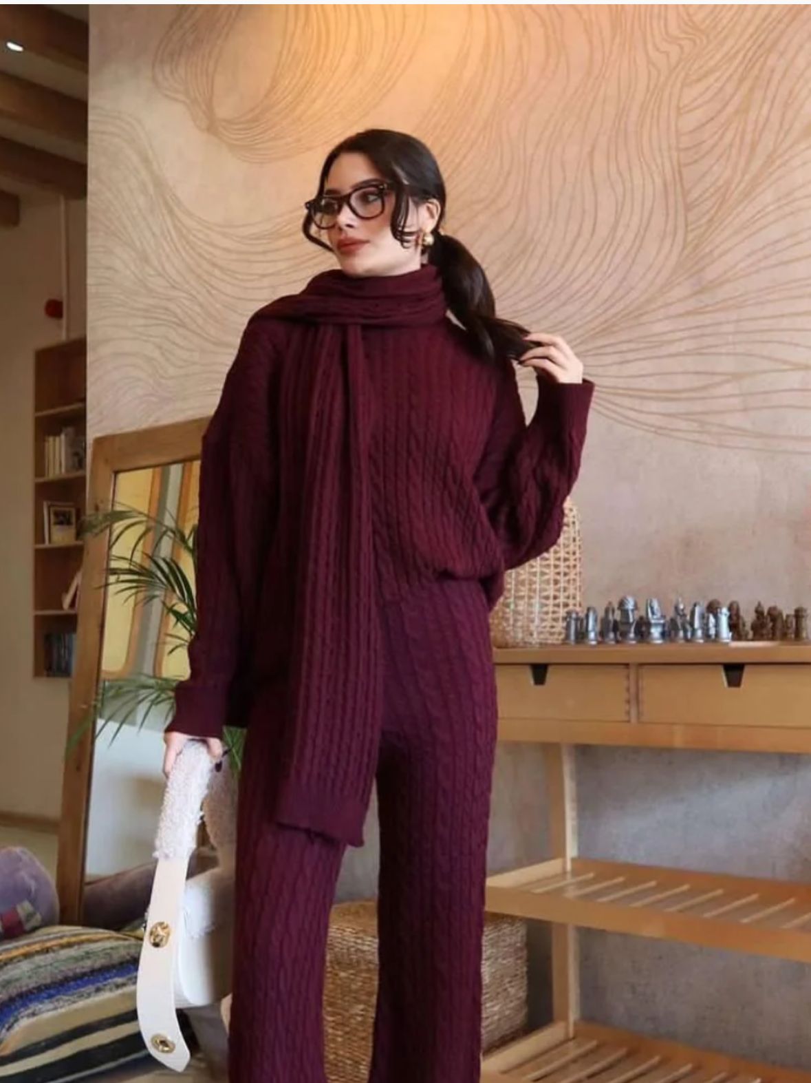 CABEL KNIT SCARF CO-ORD