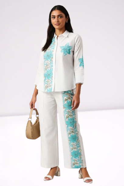 White & Teal Hand-Painted Floral Co-ord Set π€