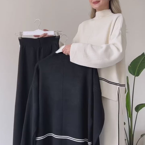 A refined woolen co-ord set designed with fluid lines and subtle contrast detailing for effortless sophistication.