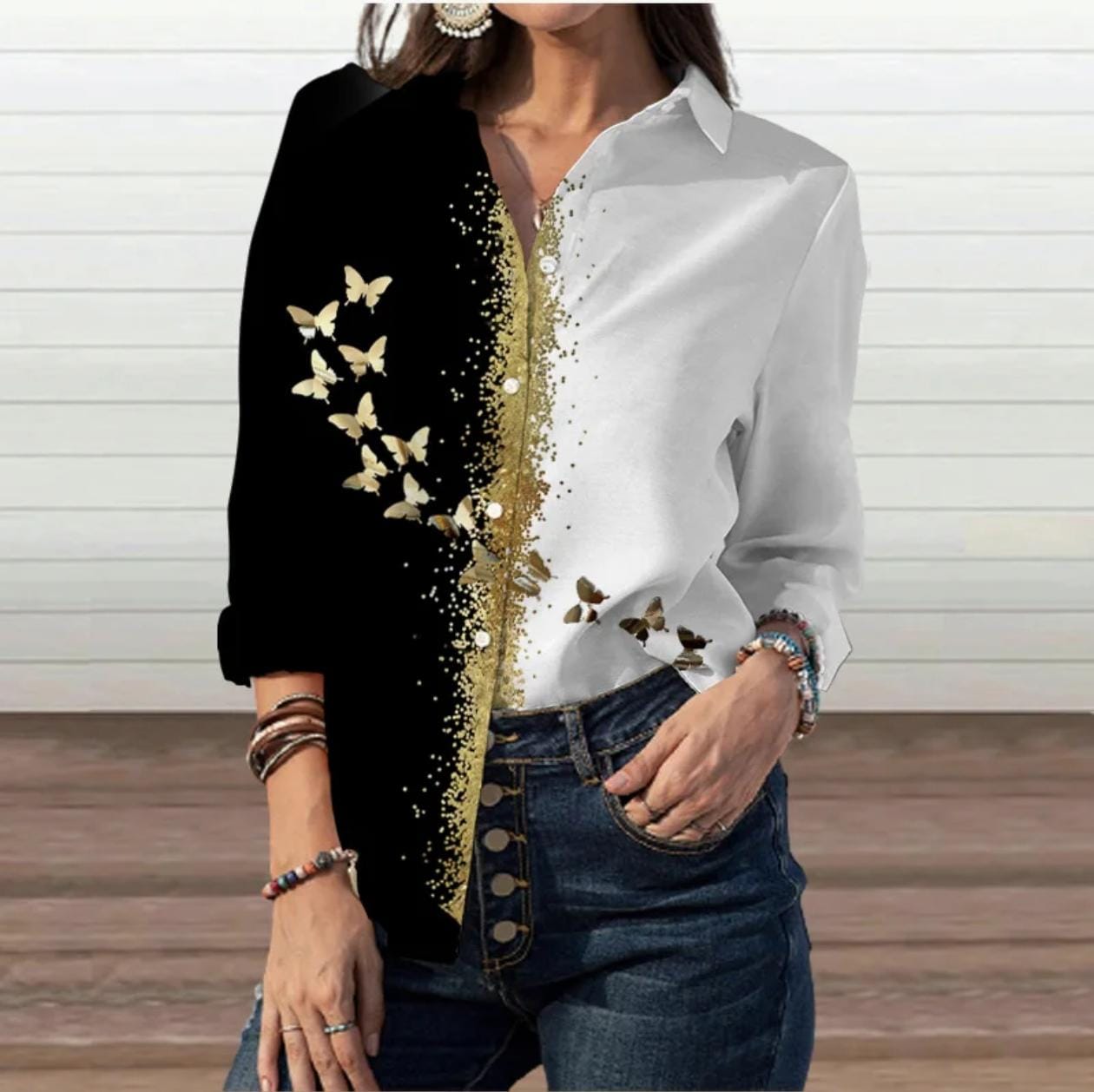 A striking monochrome shirt featuring an artistic butterfly print that fades from deep black to soft ivory for a bold yet refined statement. Designed with a clean silhouette, it blends contemporary elegance with effortless wearability.